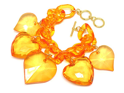 Transparent multi acrylic heart charm bracelet