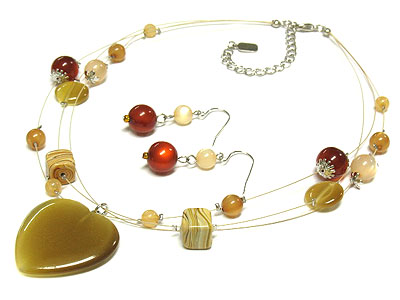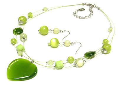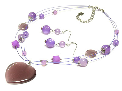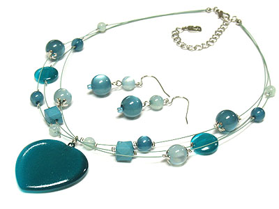 WHOLESALE HEART ACRYLIC PENDANT AND MULTI BALL BEAD ON FINE THREAD CHAIN NECKLACE SET 277792