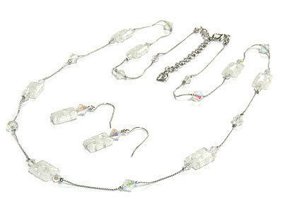 WHOLESALE GLASS FOSSILE BEADS LONG NECKLACE AND EARRING SET 277811