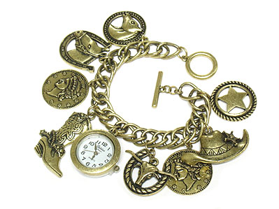 WHOLESALE HORSE SHOE AND WESTERN THEME CHARM DANGLE FASHION WATCH 278018