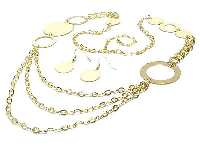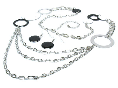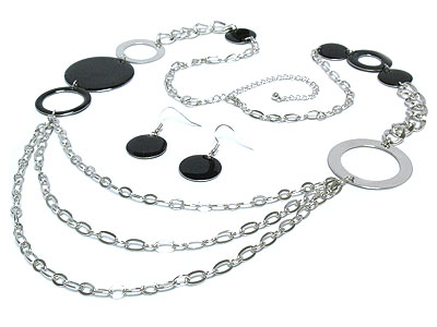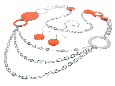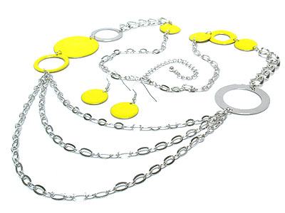 WHOLESALE ACRYL DISK AND METAL CHAIN LINK LONG NECKLACE AND EARRING SET 278037