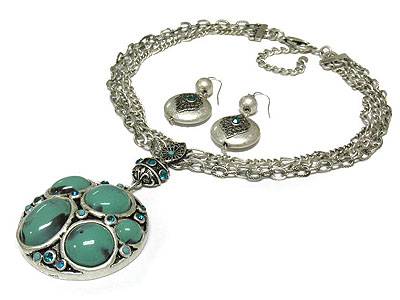 WHOLESALE GLASS BEADS AND CRYSTAL ANTIQUE METAL NECKLACE AND EARRING SET 278116