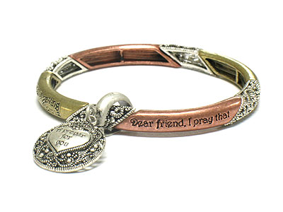 WHOLESALE BIBLE PHRASE INSCRIBED MARCASITE LOOK METAL FILIGREE CHARM STRETCH BRACELET 278210