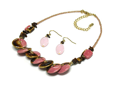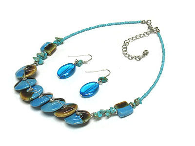 WHOLESALE FIGURINE DISKES AND GLASS STONES SEED BEAD NECKLACE AND EARRING SET 291925