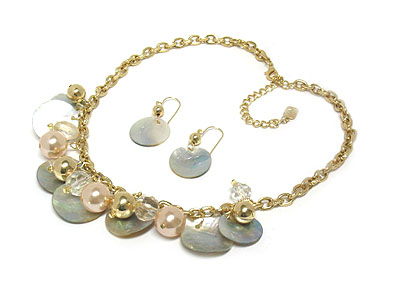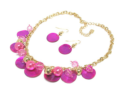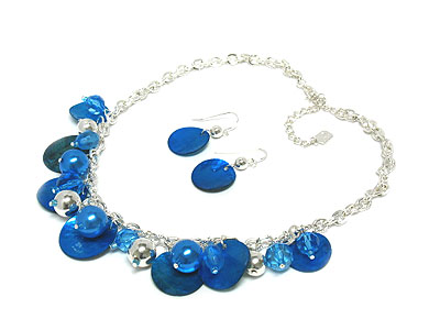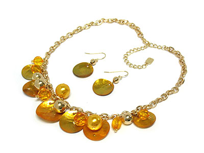 Multi shell diskes and acryl beads necklace and earring set