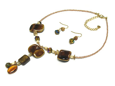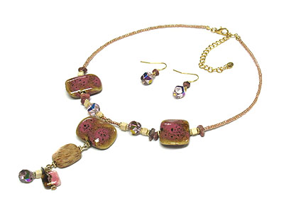 WHOLESALE FIGURINE AND WOOD DROP SEED BEAD NECKLACE AND EARRING SET 292045