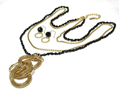 WHOLESALE MESH CHAIN LINK DROP AND DOUBLE CHAIN NECKLACE AND EARRING SET 292120