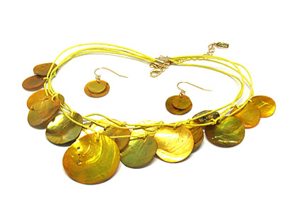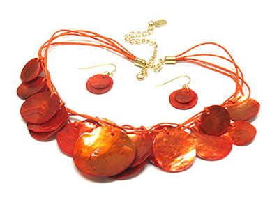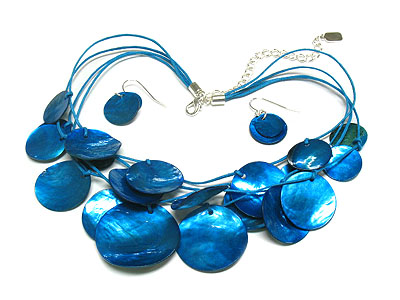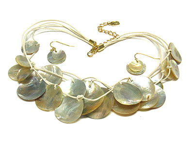 WHOLESALE MULTI STRAND SHELL DISKES NECKLACE AND EARRING SET 292425
