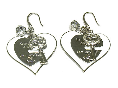 WHOLESALE ENAMEL DUAL HEART AND CRYSTAL AND KEY DANGLES EARRING 292474