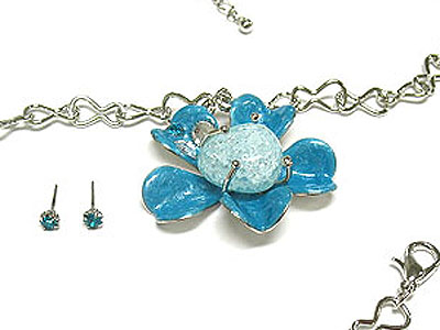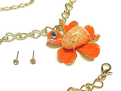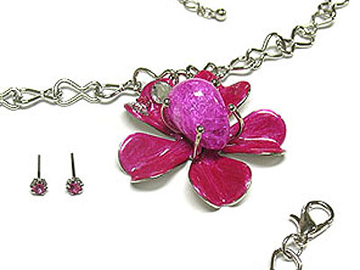WHOLESALE CRYSTAL ENAMEL FLOWER AND STONE NECKLACE AND EARRING SET 292488