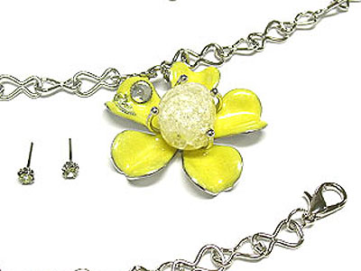 Crystal enamel flower and stone necklace and earring set