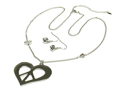 WHOLESALE HEART PEACE PENDANT SIMPLE LONG NECKLACE AND EARRING SET 306008