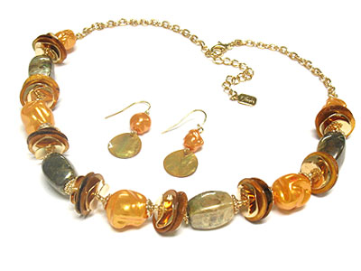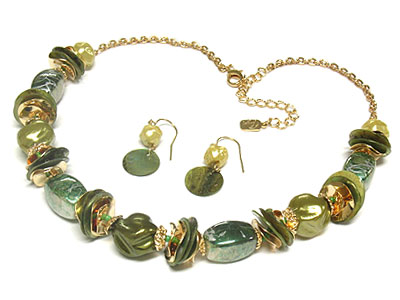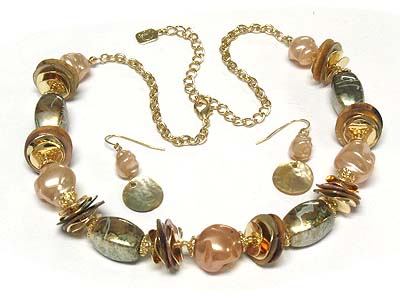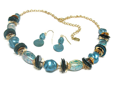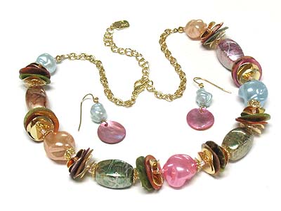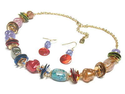 WHOLESALE MULTI REGIN BEADS AND SHELL DECO NECKLACE AND EARRING SET 306132