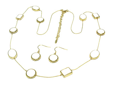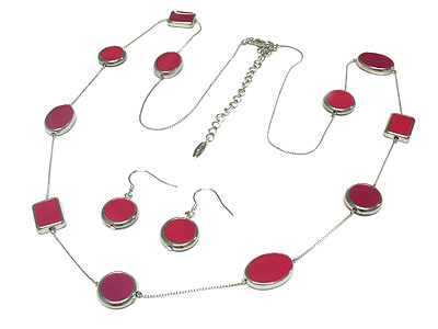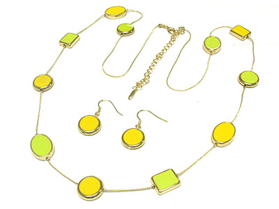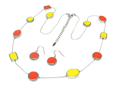 WHOLESALE ROUND AND SQUARE PATTERN ENAMEL SHAPE LONG NECKLACE AND EARRING SET 306156