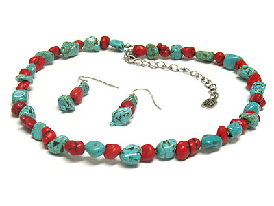 WHOLESALE TURQUOISE STONE SIMPLE SIMPLE NECKLACE AND EARRING SET 306165