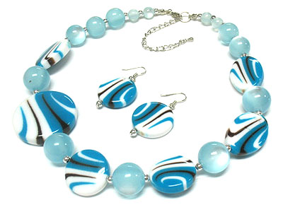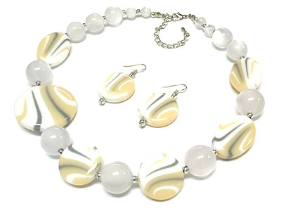 WHOLESALE MULTI MARBLE AND SOLID BEAD NECKLACE AND EARRING SET 306211