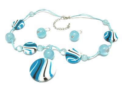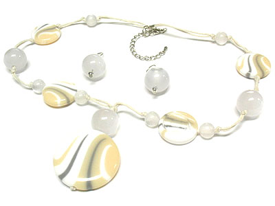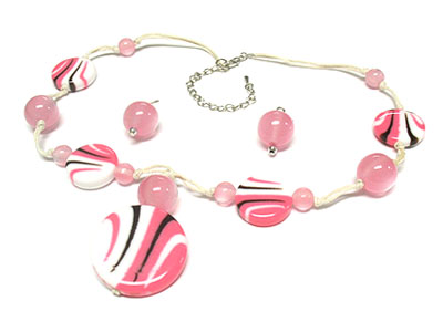 WHOLESALE MARBLE AND SOLID BEAD CORD NECKLACE AND EARRING SET 306213