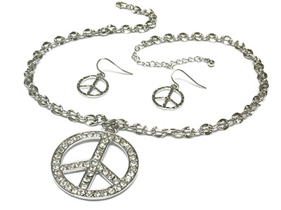 Crystal side deco peace pendant necklace and earring set