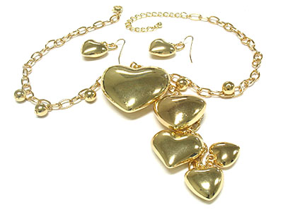 WHOLESALE MULTI METAL HEART DANGLES NECKLACE AND EARRING SET 306321