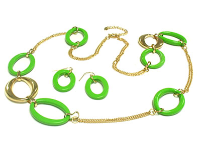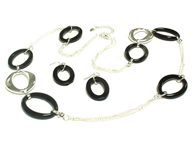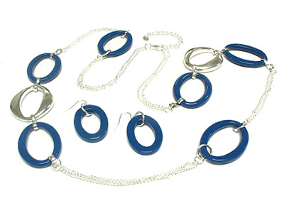WHOLESALE ACRYL AND METAL HARMONIC LINK LONG NECKLACE AND EARRING SET 306369