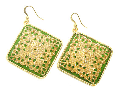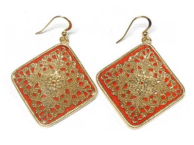 WHOLESALE LARGE ABSTRACT DESIGN SQUARE EARRING 306379