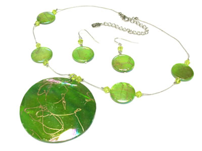 WHOLESALE LARGE SHELL DISK PENDANT NECKLACE AND EARRING SET 306384