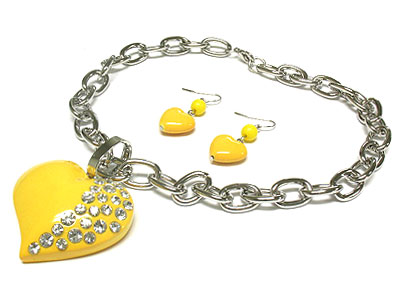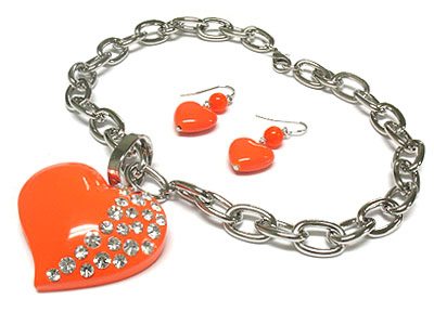 WHOLESALE CRYSTAL ACRYL HEART PENDANT BIG CHAIN NECKLACE AND EARRING SET 306416
