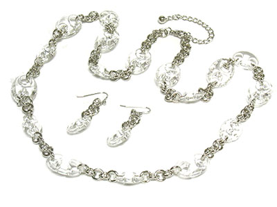 Glass bead and chain linked necklace and earring set