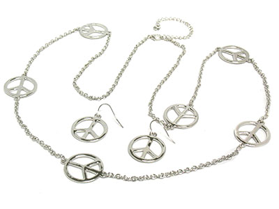 Metal peace link long necklace and earring set