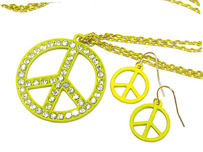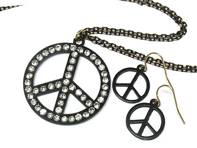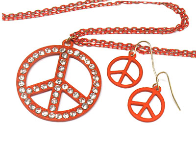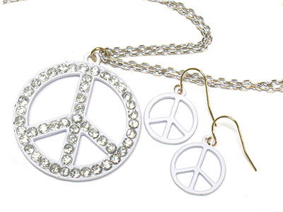 WHOLESALE CRYSTAL PEACE PENDANT DOUBLE STRANDS NECKLACE AND EARRING SET 306648