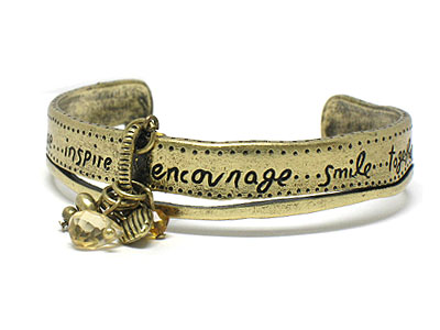Metal center bunch of charms bangle with phrase