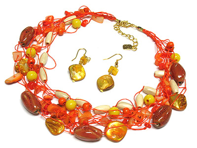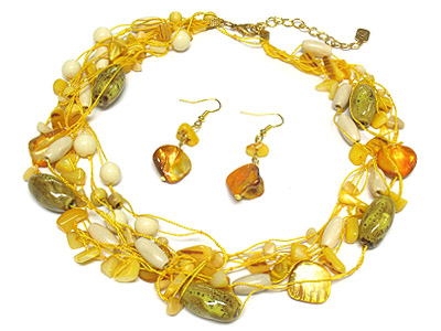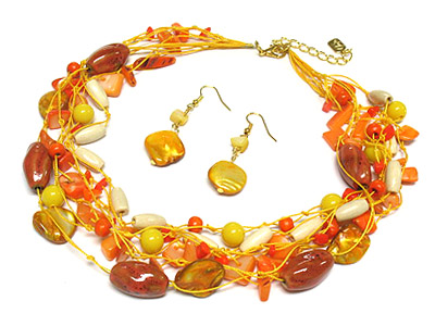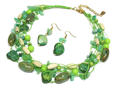 WHOLESALE MULTI STRANDS PRECIOUS STONE AND ACRYL BEAD MIX NECKLACE AND EARRING SET 306763