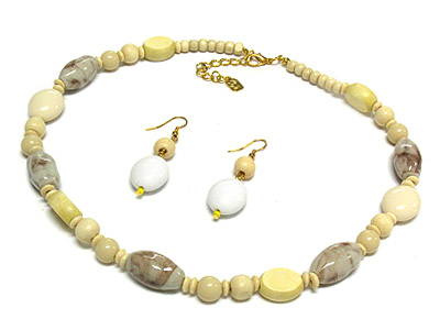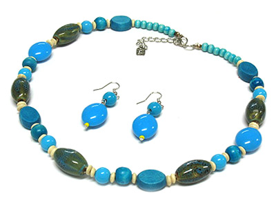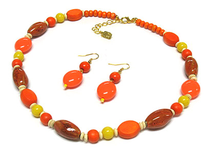 WHOLESALE FIGURINE AND ACYRLIC AND WOOD BEADS NECKLACE AND EARRING SET 306775