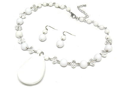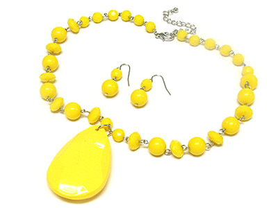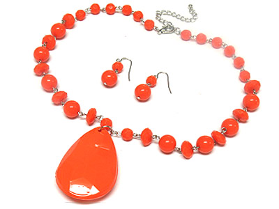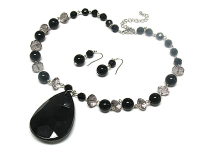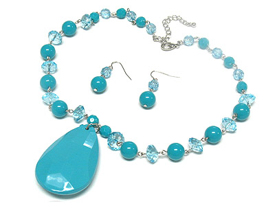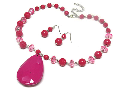 WHOLESALE LARGE ACRYLIC TEAR PENDANT AND FACET CUT BEAD NECKLACE AND EARRING SET 306786