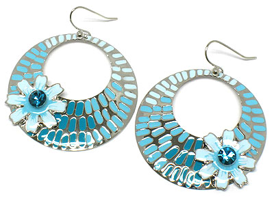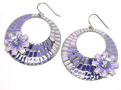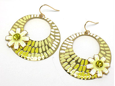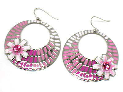 WHOLESALE SPRING COLOR PAINTED ROUND DISK WITH CRYSTAL FLOWER EARRING 306812