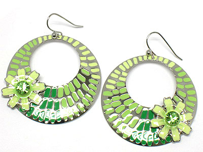 Spring color painted round disk with crystal flower earring