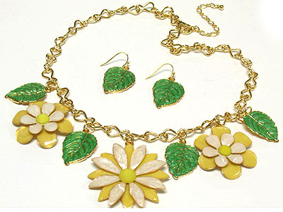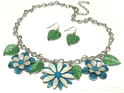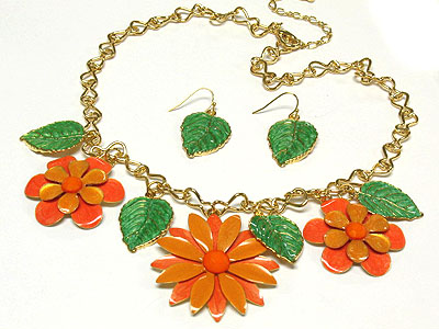 WHOLESALE PASTEL TONE FLOWER AND LEAF PENDANT NECKLACE AND EARRING SET 306819
