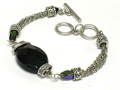 Semi precious stone and quartz deco toggle bracelet
