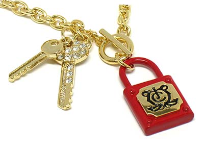 WHOLESALE DESIGNER INSPIRED PADLOCK AND DUAL KEYS PENDANT TOGGLE NECKLACE 328402
