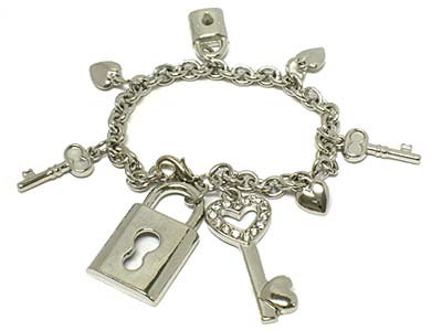 WHOLESALE LOCK AND CRYSTAL KEY AND OTHER SMALL CHARMS BRACELET 328440