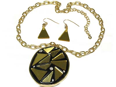 WHOLESALE CRYSTAL METAL OVAL MIRROR FRAGMENT PENDANT NECKLACE AND EARRING SET 328458