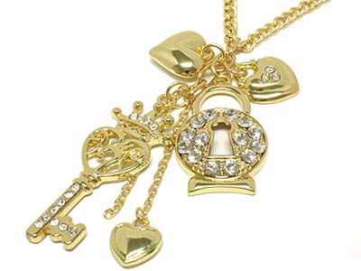WHOLESALE CRYSTAL KEY LOCK AND CROWN PENDANT NECKLACE 328512