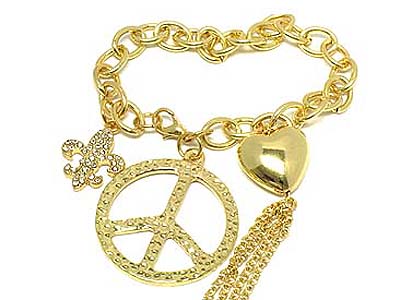 WHOLESALE PEACE AND CRYSTAL FLEUR DE LIS AND HEART WITH MULTI DANGLES BRACELET 328526