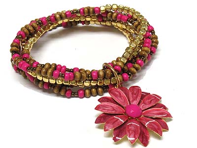 WHOLESALE EPOXY FLOWER CHARM MULTI WOOD BEADS STRETCH BRACELET 328587