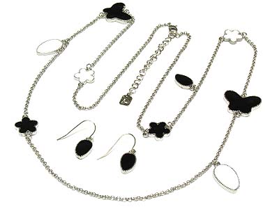 WHOLESALE MULTI EPOXY BUTTERFLY AND CLOVER AND OVAL DANGLES NECKLACE AND EARRING SET 328688