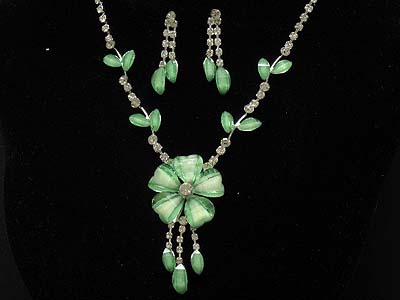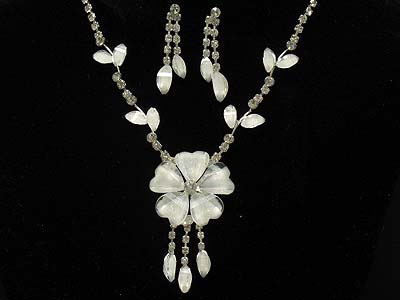 Rhinestone deco acrylic flower pattern and dangles necklace and earring set