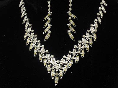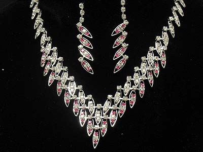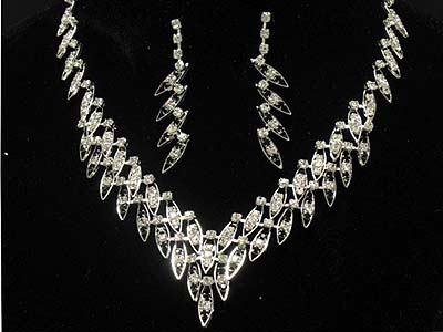 WHOLESALE RHINESTONE DOUBLE PLENTIFUL FEATHER SHAPE NECKLACE AND EARRING SET 328755