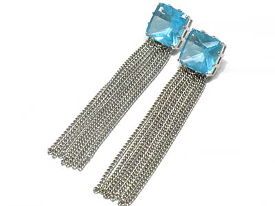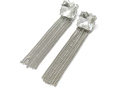 WHOLESALE FACET CUT SQUARE CRYSTAL AND LONG CHAIN DROP EARRING 328768