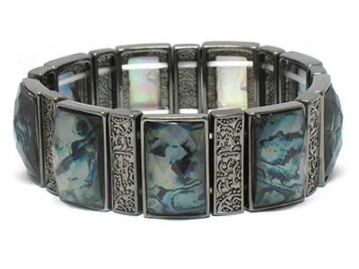 Facet cut acrylic stone and casting metal double stretch bracelet