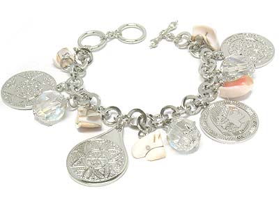 Multi casting metal disk and acryl bead charms toggle bracelet